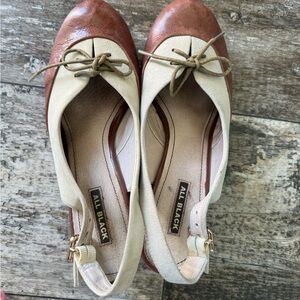 Vintage All black tan brown leather round toe sling back low heels (39.5)