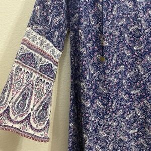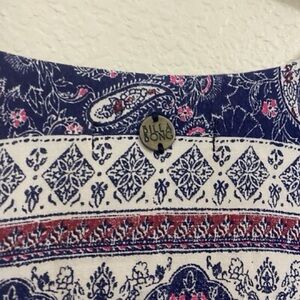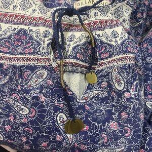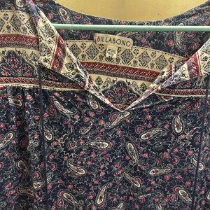 EUC Billabong Paisley Tie-Neck Peasant Tunic Dress in Navy and White Design