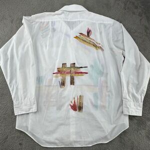 Creative Artwear L White Long Sleeve Button Up Shirt Cactus Sun Southwest Art