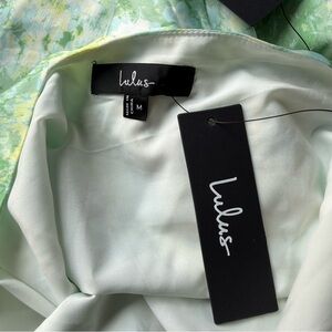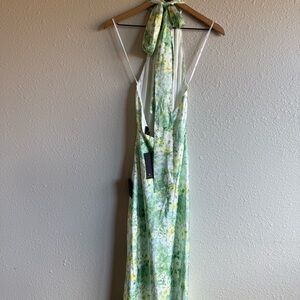 NWT Lulus Glowing Presence Light Green Floral Satin Halter Maxi Dress medium