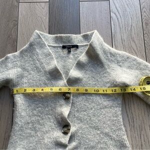 Chic and cozy light gray cardigan. Features a classic button-up design. Ideal for layering.