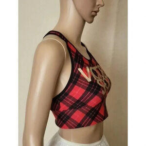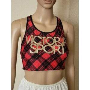Victoria's Secret Sports Bra Red Gold Spell Out Racerback.