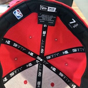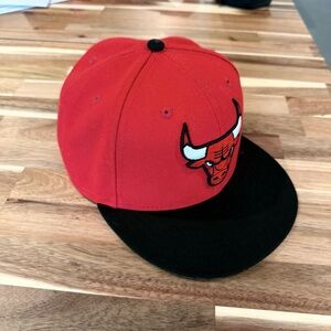Classic Chicago Bulls snapback by New Era. Red crown with black flat brim. Embroidered Bulls logo on front. Adjustable fit with structured shape. Sporty team style for fans. Very good condition. Taking offers and bundles.
