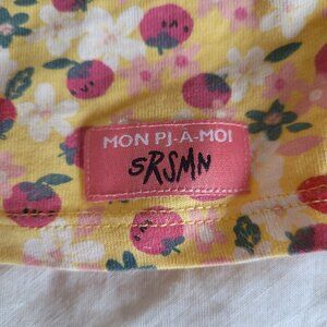 Keywords: souris mini, girls pajamas, kids pajama set, strawberry print, floral print, cute pajamas, cotton sleepwear, girls sleep set, matching set, yellow pajamas, summer pajamas, comfy loungewear, kids clothing, size 12 girls
