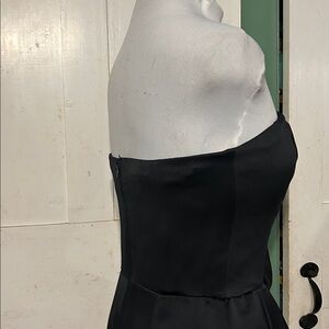 Full-length black satin strapless gown