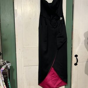 VTG Nili Martin Strapless Gown Sz 12 Black + Magenta Lining Made USA 90s Mobwife