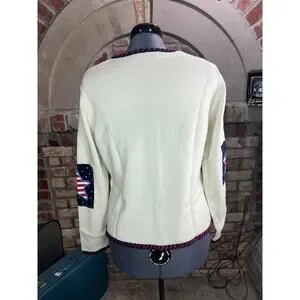 wonderful new without tags sweater with great patriotic theme. 100% cotton