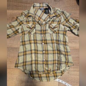 Harley-Davidson ($85) Women’s Plaid Button Up Shirt Western Moto Yellow Gray