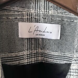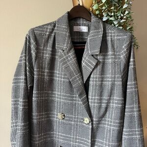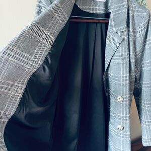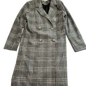 L'Academie Gray Plaid Double-Breasted Wool Blend Trench Coat