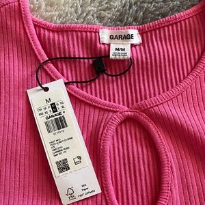 Garage Hot Pink Ribbed Crop Top with Front Cutout Rings