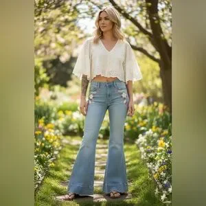 Model: "Beautiful" High-Rise Bell-Bottom Jeans