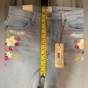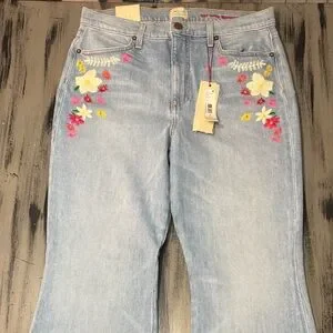 Alice + Olivia "Beautiful" High-Rise Bell Bottom Jeans - Floral Embroidered NWT