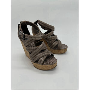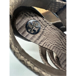 Tory Burch Wedge Sandals Taupe Snakeskin Size 6.5M