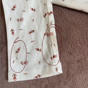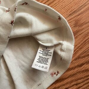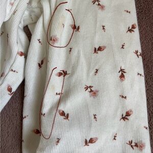 Has stains on left side of top and on sleeve as seen in last two pictures.