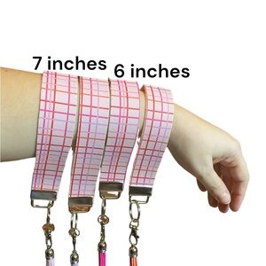 Adorable keychain wristlets made with faux leather. Comes in sizes 6 inches and 7 inches. Perfect for holding your keys and looks stylish while doing so.