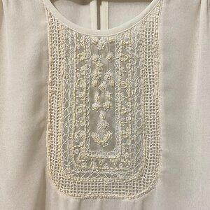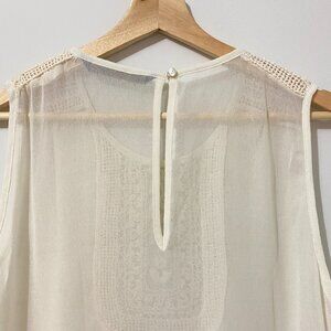 NWOT Zara Sheer Ivory White Tank Top Blouse with Open Work Bead Embroidery Boho