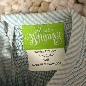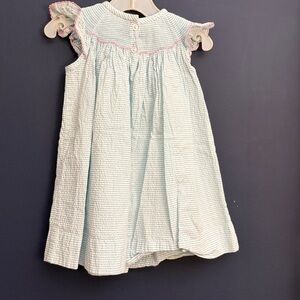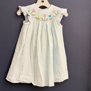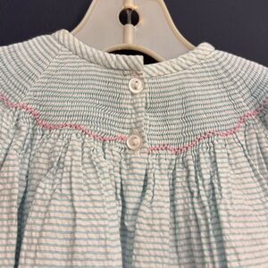 Classic Whimsy Smocked Dress 12M Blue White Seersucker Floral Embroidered
