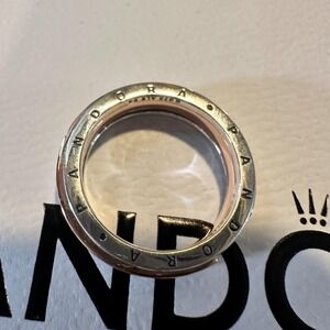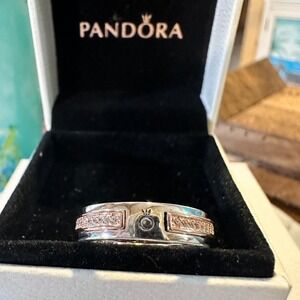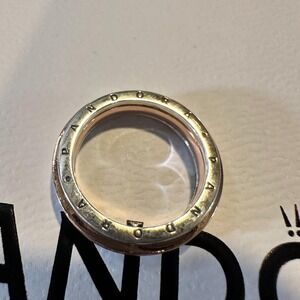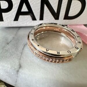 GENUINE PANDORA ROSE GOLD SIGNATURE TWO-TONE LOGO PAVE RING 182773C 58 (9)