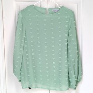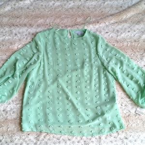 NWT Ophelia Roe Pom Bubble Sleeve Blouse in Mint.