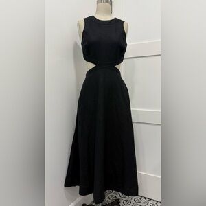 Banana Republic Black Linen Cutout Aline Midi Sun Dress Size 2 Boho Coastal