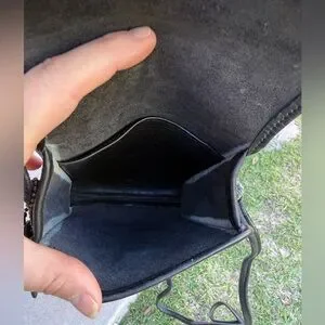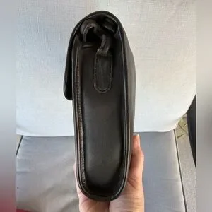Sleek black leather crossbody bag with a secure gold-tone turn-lock closure. Compact and refined for everyday use. comfortable wear, black color complements any outfit.