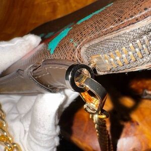 This gorgeous vintage Louis Vuitton piece is in great working condition and full of character. The zipper glides smoothly, and the bag has been thoughtfully converted with a small unbranded rivet and a 47-inch unbranded chain, allowing you to wear it comfortably as a crossbody or shoulder purse. The chain attaches at the zipper end and can be easily removed if you prefer to use it as a large clutch or wallet.