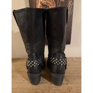 Harley-Davidson Womens Black Leather Rhinestone Studded Harness Boots Size 6