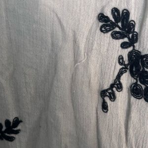 This dress is in good used condition, just needs a press/steam. LOVE this dress, so fun and flirty. There are some pulls in the embroidery, as shown in photos. They can be snipped off without compromising the clothing.