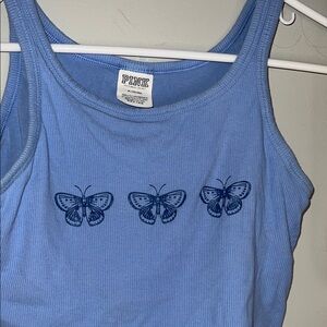PINK Victoria's Secret Light Blue Butterfly Ribbed Crop Tank