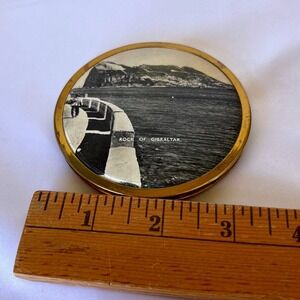 Vintage Rock of Gibraltar Souvenir Brass Powder Compact Made in England 3 inch