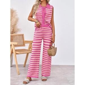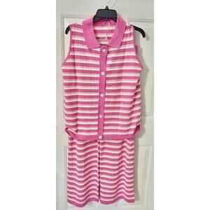 Wonens Striped Perforated Top And Lounge Pants, Cruisewear Sz XL Pink/ White New