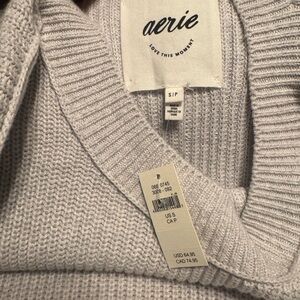 aerie Heather Light Gray Ribbed Crewneck Sweater