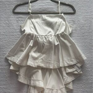 Soft ribbed knit crewneck. Relaxed silhouette with dropped shoulders. Balloon sleeves and fitted cuffs. Cozy lightweight layering piece.