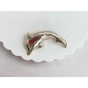 Sterling Polished Silver Dolphin Shaped Large 3 Dimensional Vintage Brooch Pin