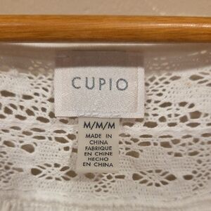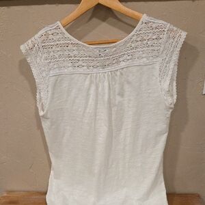 Cupio White Lace-Trim Cap Sleeve Top Size Med