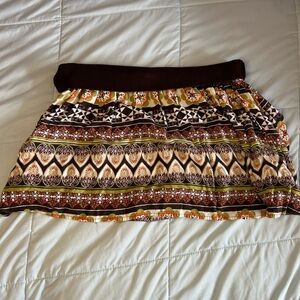 Lily White Brown, Cream and Green Patterned Mini Skirt