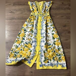 Farm Rio Sicily Scarf Cotton Flutter Maxi Dress