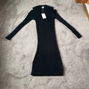 NWT A New Day Black Ribbed Cold Shoulder Bodycon Dress Long Sleeve SIZE XS