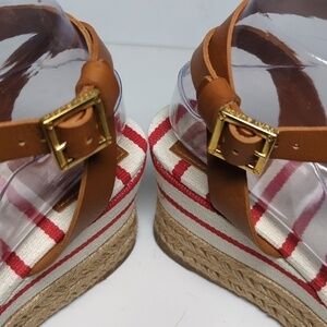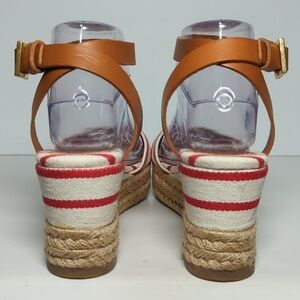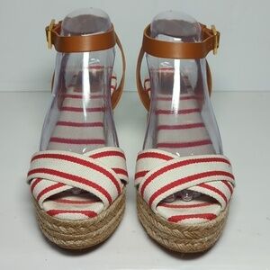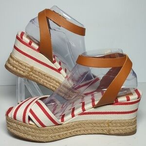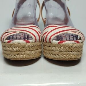 Tory Burch Karissa canvas wedge espadrille platform sandals womans size 9