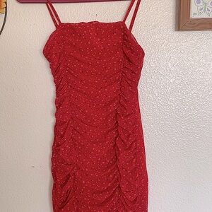 Nasty Gal Red Floral Ruched Dress