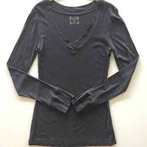 Comfy Grey Long Sleeved V Neck Women's Shirt