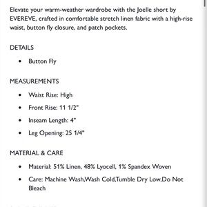 Elevate your warm-weather wardrobe with the Joelle short by EVEREVE, crafted in comfortable stretch linen fabric with a high-rise waist, button fly closure, and patch pockets.