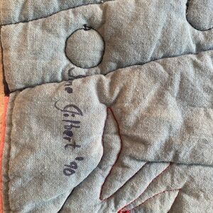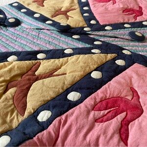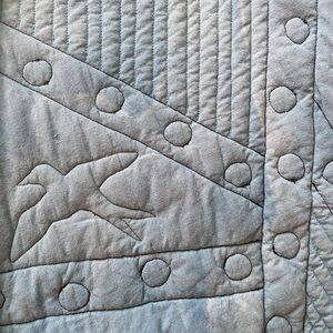 This quilted vest is a one of a kind piece of wearable art. The design features silhouettes of birds, lines, and dots and is signed by the artist.