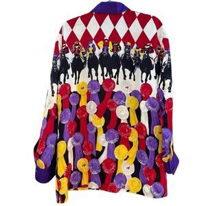 Vintage 1990s 100% Silk Jockey Prize Ribbon Button Down Blouse