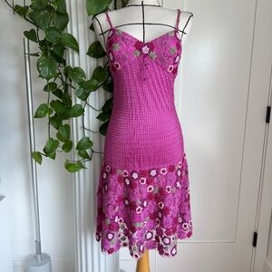 Sue Wong Fuchsia Crochet Floral Dress - Medium