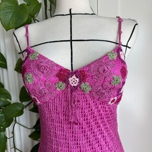 incredible pink Sue Wong fully crocheted dress. Absolutely insane details, in pristine condition, so playful and flirty. One of a kind, rare!