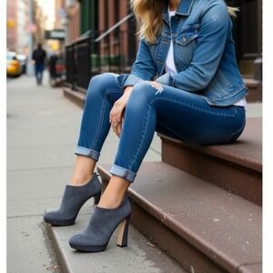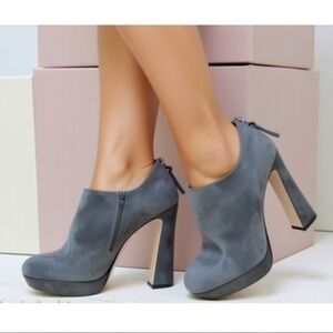 MIU MIU Back Zipper Funky Heel Platform Suede Grey Ankle Booties Shoes 9 Ret$550