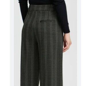 New With Tag Ichi Ihruti Leg Dark Gray Melange (total Eclipse Striped) Pants Trousers Sz Sm. Features straight fit, Feel like soft knitted jersey with stretch, 68% viscose / 14% polyester / 13% polymide / 5 % elastane, washable, side pockets, unlined, side zip closure. Approx Measurements: Waist: 15" / Rise: 11.5" / Inseam: 32".