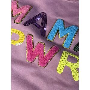 Simply Southern Mama Power Crew Neck Sweatshirt Medium Puff Letter Sequin