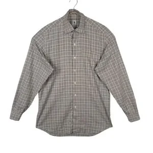 Lorenzini Italy Men's L Green Red Blue Check Long Sleeve Button Down Shirt